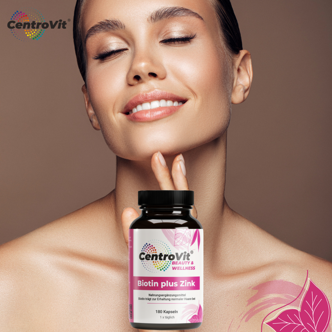 Der Körper kann Biotin nicht selbst produzieren und ist daher auf eine externe Zufuhr, z.B. durch Nahrung oder Nahrungsergänzungsmittel wie die Biotin Kapseln von Centrovit, angewiesen. Diese Kapseln enthalten zusätzlich Zink und Pantothensäure, die lebenswichtige Spurenelemente sind und verschiedene Körperfunktionen unterstützen. Zink ist in über 3000 körpereigene Proteine und Enzyme eingebaut und spielt eine wichtige Rolle im Immunsystem. Pantothensäure ist wichtig für die Regulation von Zellwachstum und Epithelbildung.
